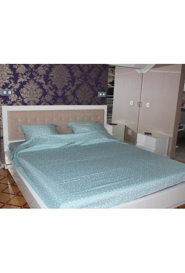 Гладкий набивной сатин  "Галактика-белый на мятном" чудесно смотрится в постельном белье. Дайте волю своей фантазии, и вы сможете создать неповторимые по дизайну комплекты.