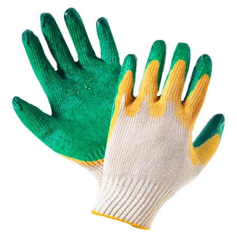 Перчатки х/б, 100% хлопок, с двойным латексным обливом. Характеризуются повышенной плотностью вязки — 13 петель на дюйм. Перчатки обладают высокой механической прочностью, латексное покрытие обеспечивает дополнительную защиту от скольжения за счет создания высокого устойчивого сцепления пальцев рук как с сухими, так и с влажными поверхностями. Рекомендуются к использованию при работах, связанных с высоким уровнем механических воздействий на руки, на механосборочных и ремонтных работах. Дают отличный результат при работе со скользящими и гладкими поверхностями. Не стесняют движений пальцев рук, благодаря свободному воздухообмену не допускают потения рук. Сохраняется высокая чувствительность пальцев. Перчатки надежно предохраняют руки от загрязнения, механических повреждений острыми углами, арматурой, стеклом и т.д.