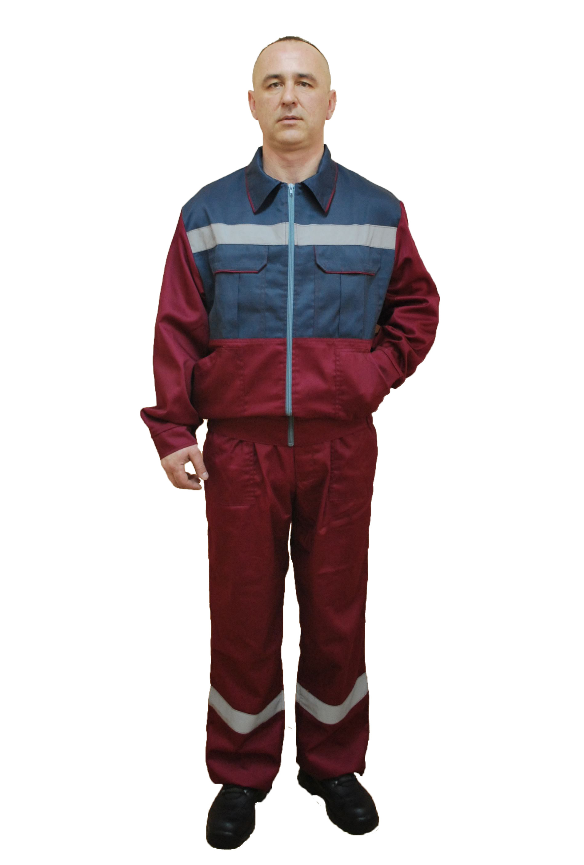 Куртка укороченная, с регулировкой объёма по талии и низу, центральная застежка на молнии, карманы нагрудные с клапанами и нижние накладные, СВ полосы, усилительные накладки в области локтей, манжеты на пуговицах.