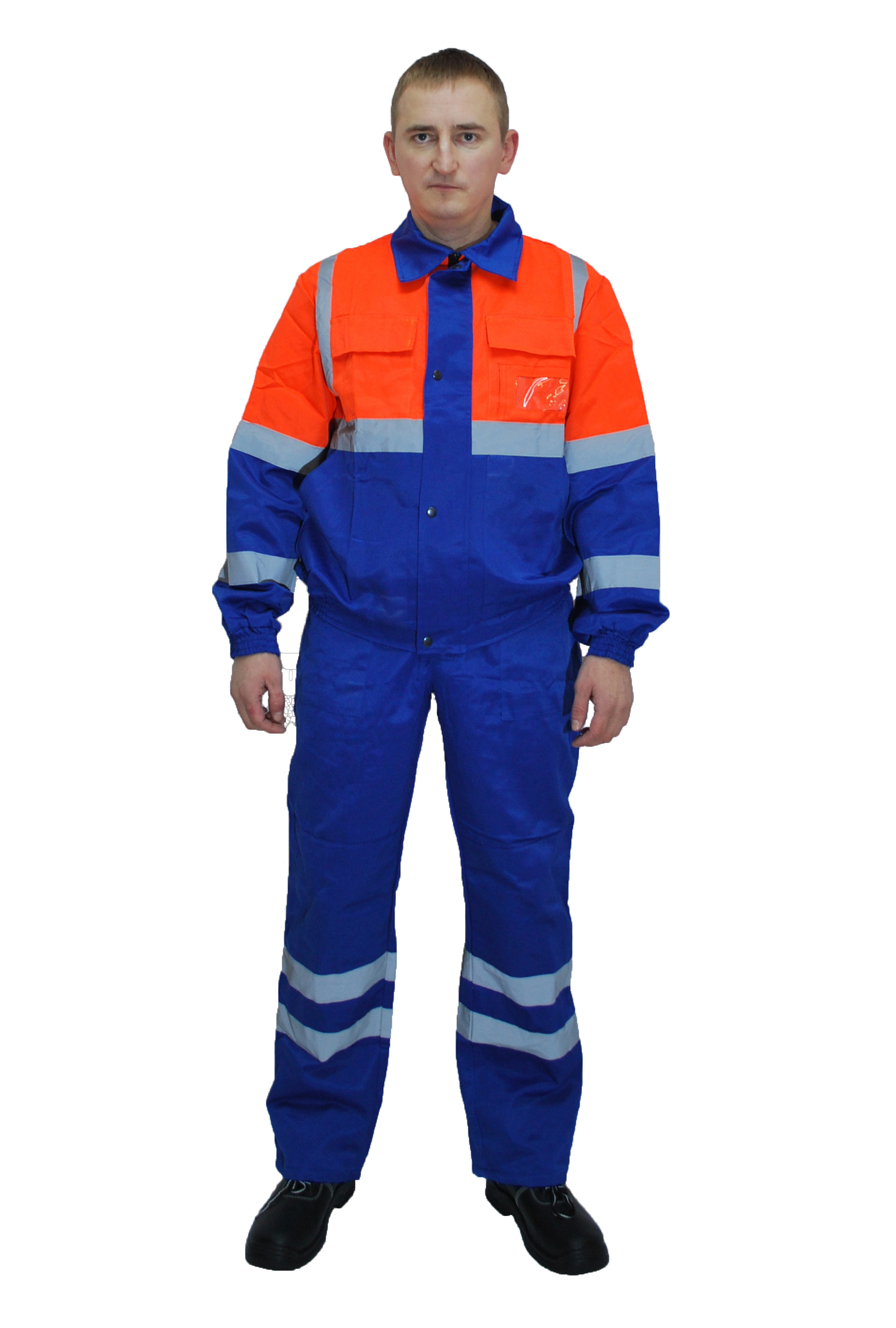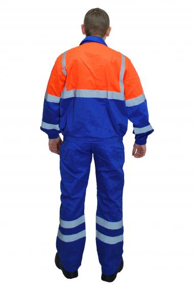 Светоотражающая полоса 50 мм по рукавам, кокеткам полочки и спинки, по низу брюк.